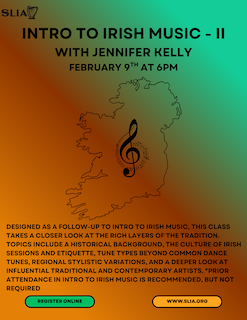 Designed as a follow-up to Intro to Irish music, this class takes a closer look at the rich layers of the tradition. Topics include a historical background, the culture of Irish sessions and etiquette, tune types beyond common dance tunes, regional stylistic variations, and a deeper look at influential traditional and contemporary artists, Prior attendance in Intro to Irish Music is recommended, but not required.