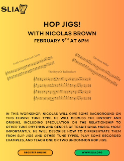 In this workshop, Nicolas will give some background on this elusive tune type. He will discuss the history and origins, including speculation on the relationship to the other tune rhythms and genres of traditional music. Most importantly, he will describe how to differentiate them from slip jigs and other tune types, play some recorded examples, and teach one or two uncommon hop jigs.